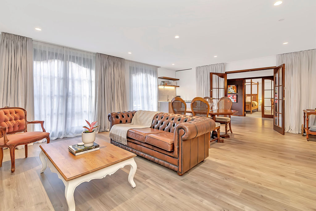 This two bedroom apartment, with spacious relaxing lounge area and kitchenette, is perfect for two couples. Both beautifully appointed bedrooms offer king size beds and en suites. The kitchenette offers complimentary tea/coffee but you're walking distance to 20 cafes, so why would you need it!