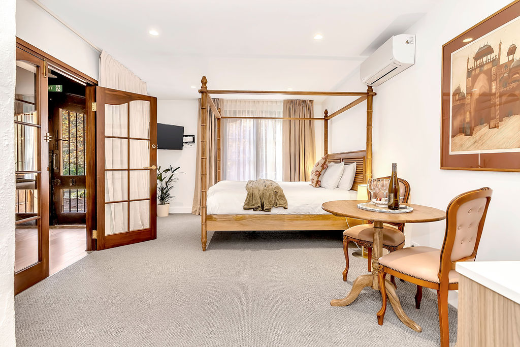 This room, offering a king size four poster bed and en suite with shower and large bathtub, is perfect for romantic couples. If you want to spend the weekend in bed there's a microwave, espresso machine and bar fridge. But remember you're only a short walk away to half a dozen romantic restaurants!